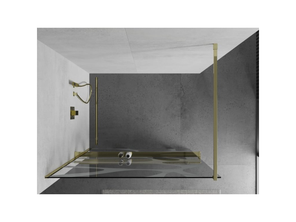 Mexen Kioto sprchová zástena s držiakom na uteráky a poličkou 140 x 200 cm, priehľadné sklo,/bialy wzór 8 mm, zlatá - 800-140-121-50-97
