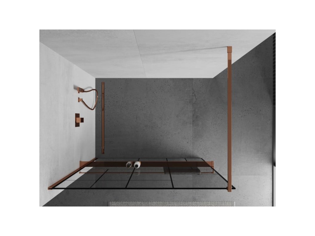 Mexen Kioto sprchová zástena s držiakom na uteráky a poličkou 140 x 200 cm, priehľadné sklo / čierny vzor, 8 mm ružové zlato - 800-140-121-60-78