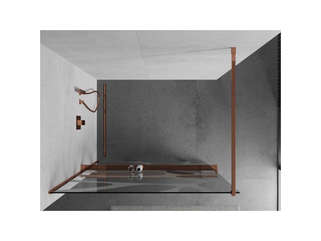 Mexen Kioto sprchová zástena s držiakom na uteráky a poličkou 70 x 200 cm, priehľadné sklo / biely vzor, 8 mm, ružové zlato - 800-070-121-60-97