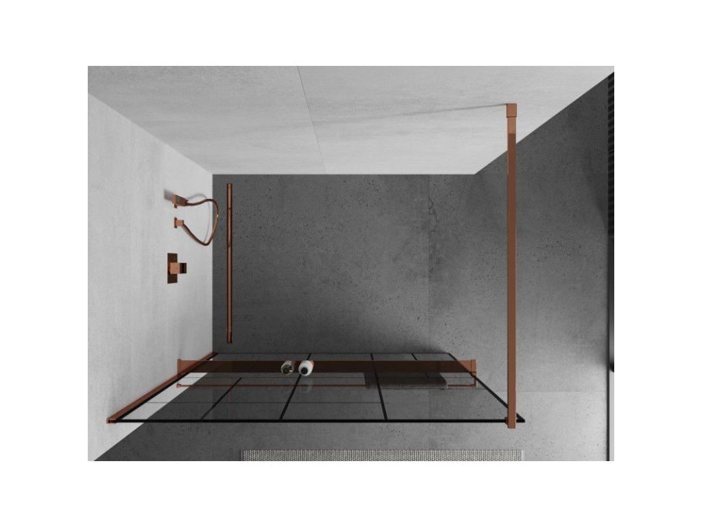 Mexen Kioto sprchová zástena s držiakom na uteráky a poličkou 70 x 200 cm, priehľadné sklo / čierny vzor, 8 mm, ružové zlato - 800-070-121-60-78