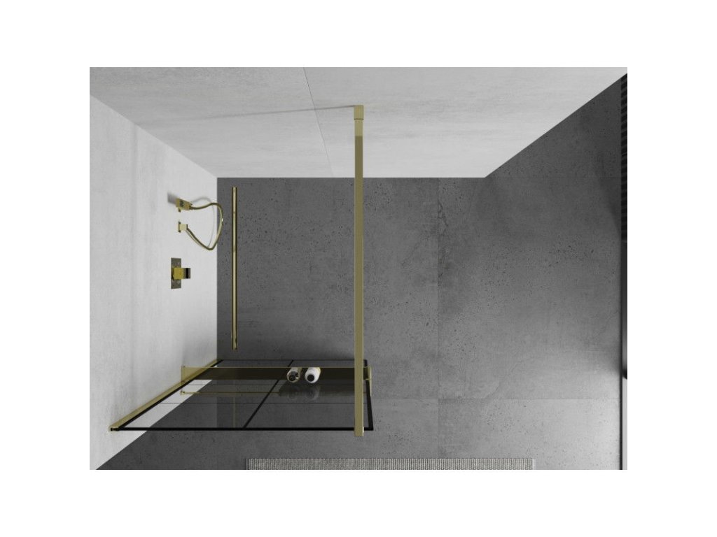 Mexen Kioto sprchová zástena s držiakom na uteráky a poličkou 70 x 200 cm, priehľadné sklo / čierny vzor, 8 mm, zlatá - 800-070-121-50-77