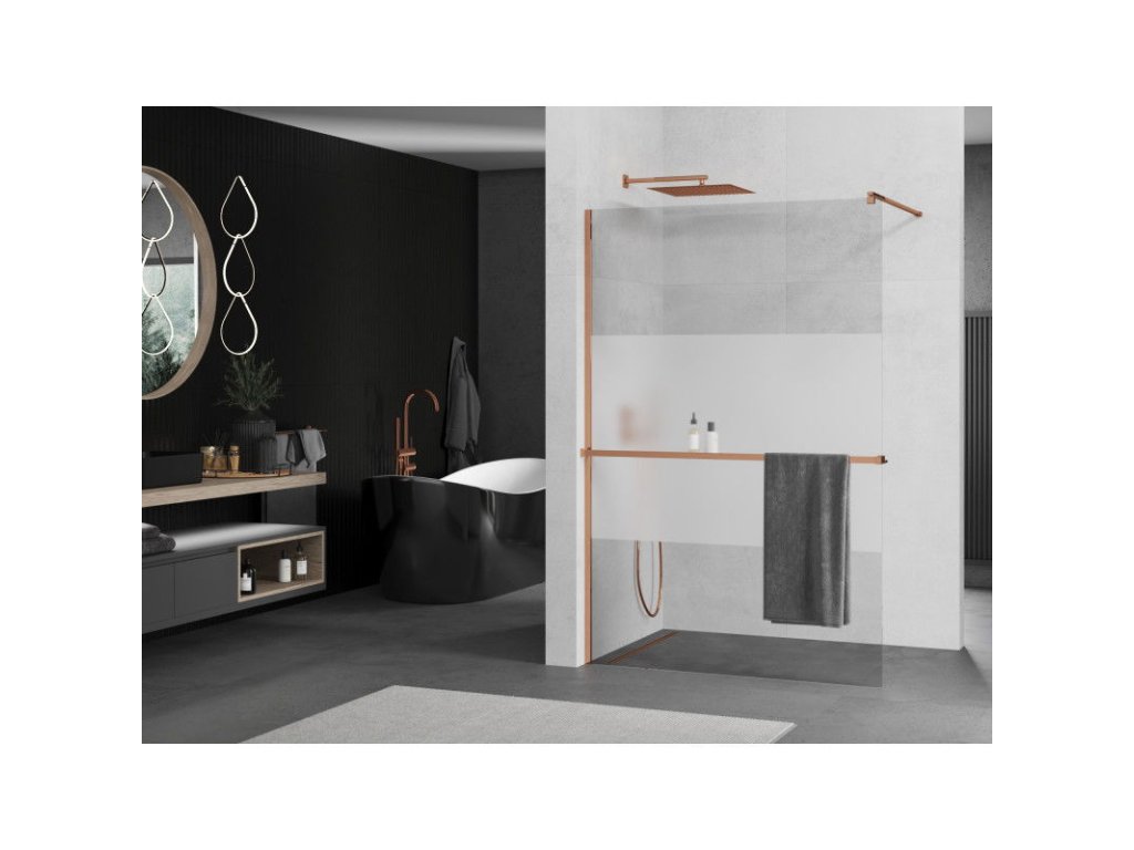 Mexen Kioto sprchová zástena s držiakom na uteráky a poličkou 70 x 200 cm, sklo priehľadné / námraza, 8 mm, ružové zlato - 800-070-121-60-35