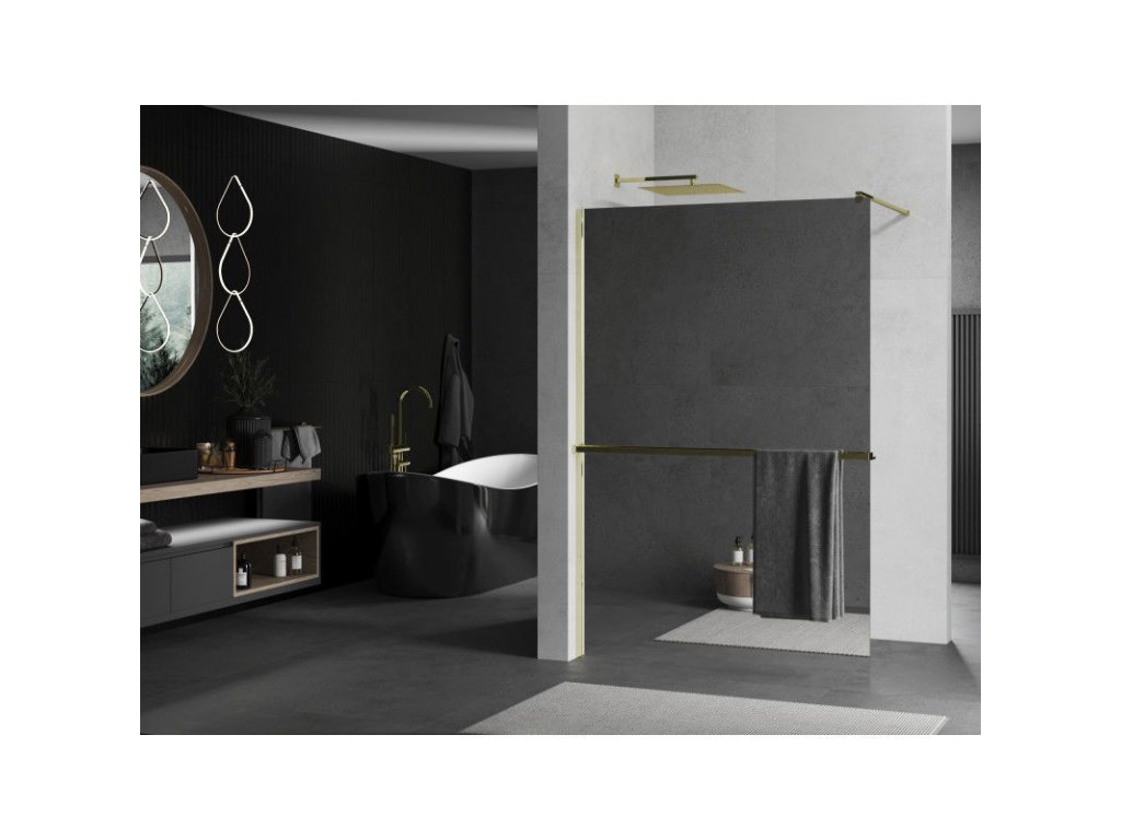 Mexen Kioto sprchová zástena s držiakom na uteráky a poličkou 80 x 200 cm, sklo zrkadlo, 8 mm, zlatá - 800-080-121-50-50