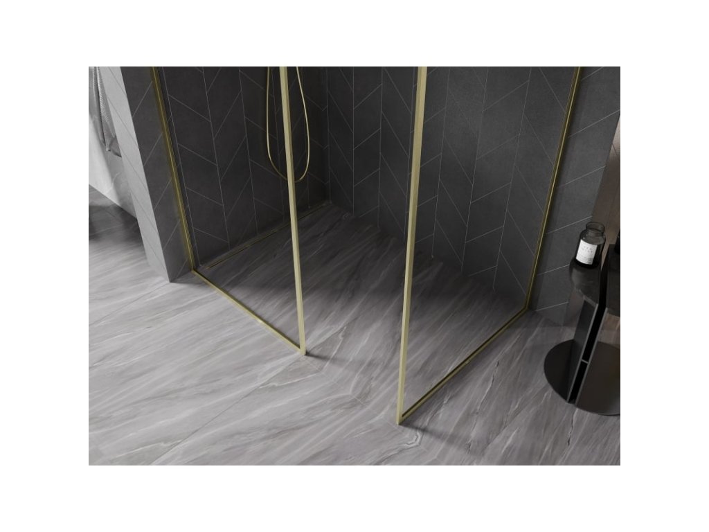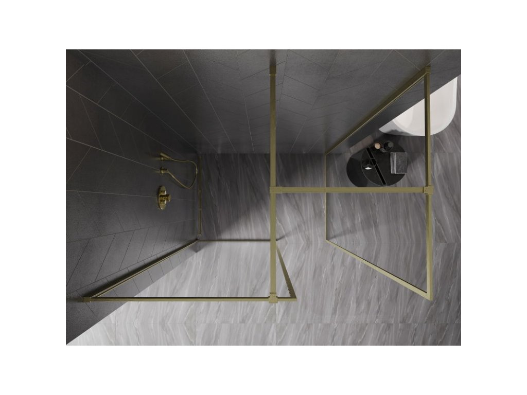 Mexen Kioto-F sprchová stena s rámom 115 x 100 cm, priehľadná 8 mm, zlatý kartáč - 800-115-202-04-55-100