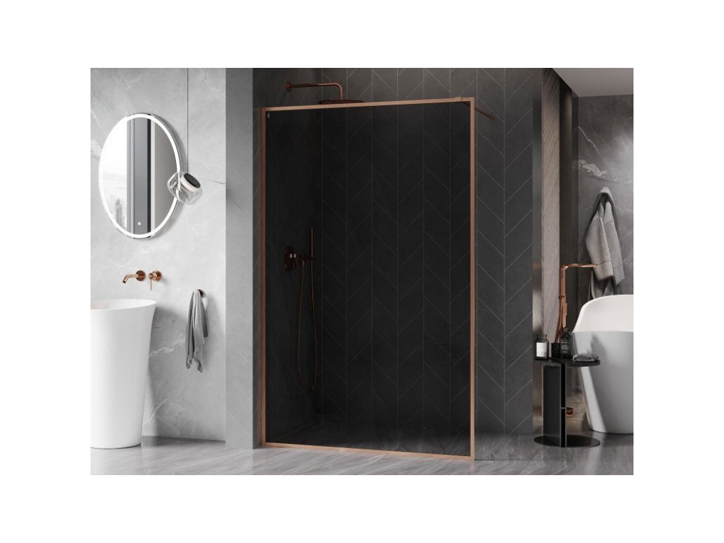 Mexen Kioto-F sprchová stena s rámom 70 x 202 cm, grafit 8 mm, brúsená meď - 800-070-104-65-40