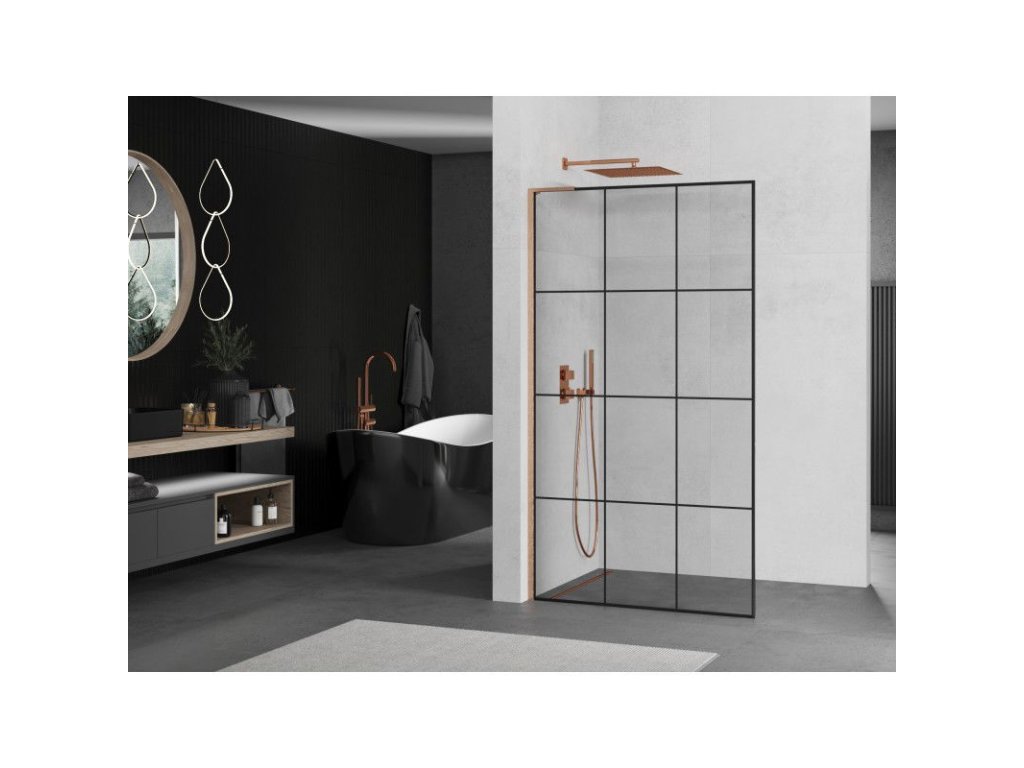 Mexen Kioto L sprchová stena 100 x 200 cm, čierny dizajn, brúsená meď - 800-100-103-65-77