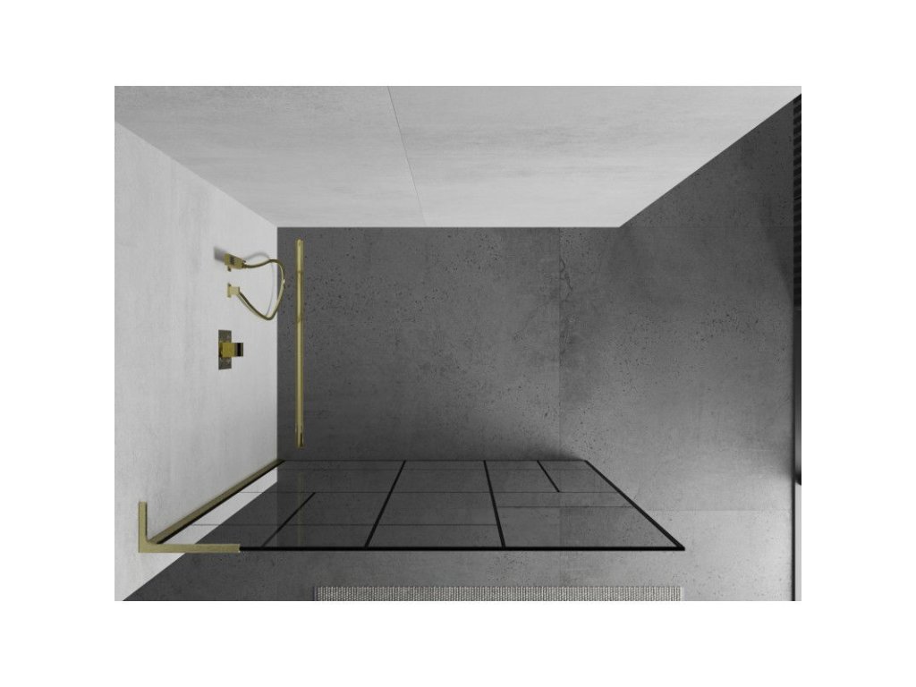 Mexen Kioto L sprchová stena 100 x 200 cm, čierny vzor, zlatý kartáč - 800-100-103-55-78