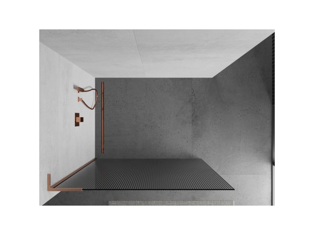 Mexen Kioto L sprchová stena 100 x 200 cm, pásy, brúsená meď - 800-100-103-65-09