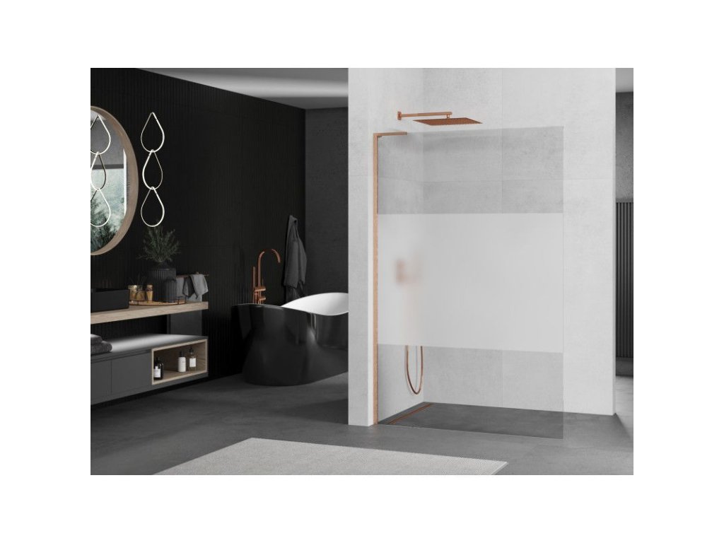 Mexen Kioto L sprchová stena 100 x 200 cm, transparentná/mrazivá, brúsená meď - 800-100-103-65-35