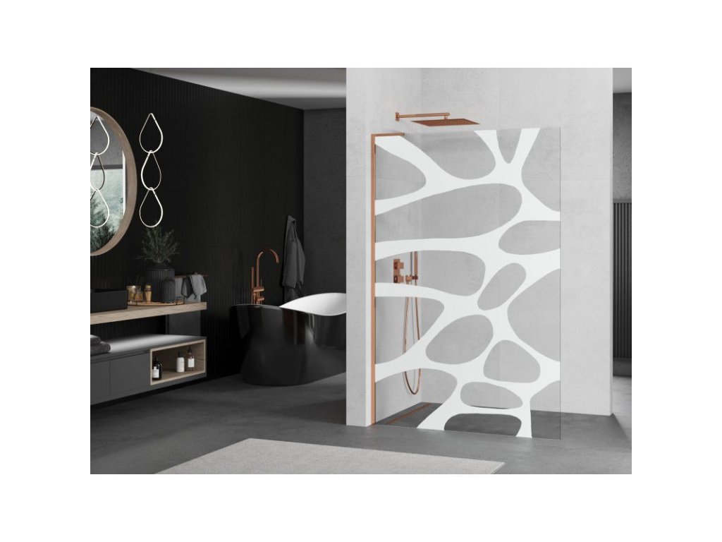 Mexen Kioto L sprchová stena 110 x 200 cm, biely vzor, ružové zlato - 800-110-103-60-97