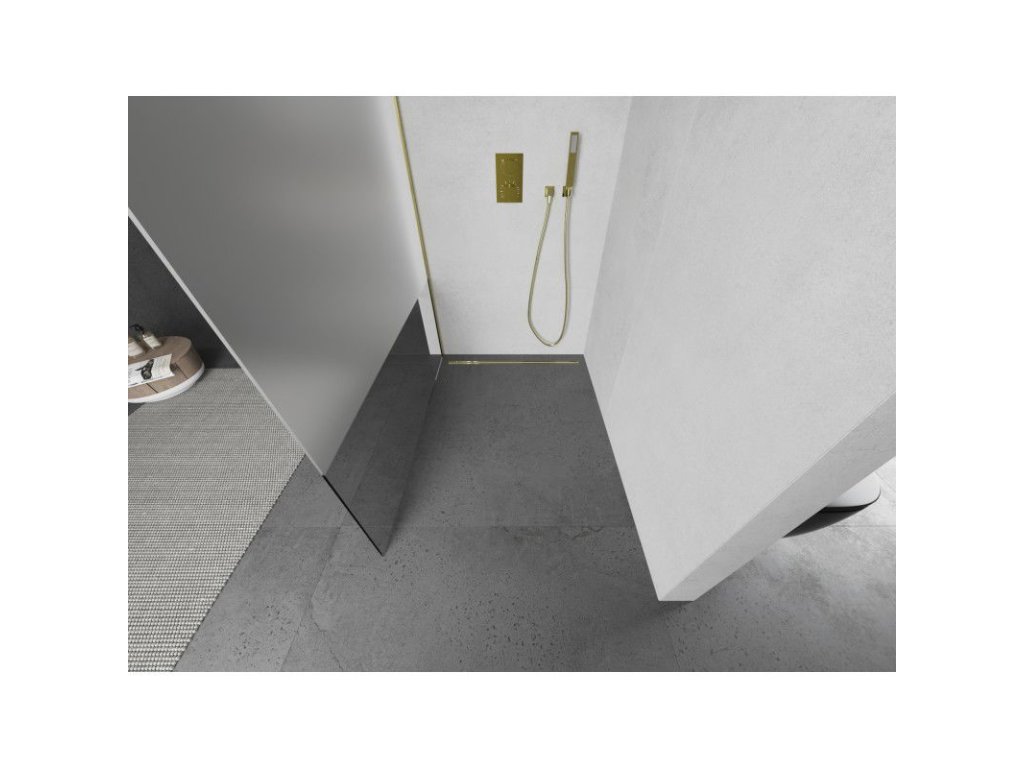 Mexen Kioto L sprchová stena 70 x 200 cm, transparentná/mrazivá, zlatá - 800-070-103-50-35