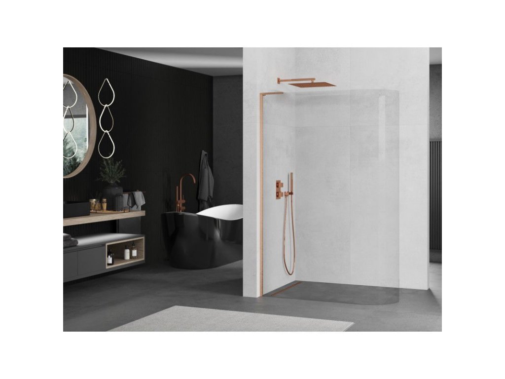 Mexen Kioto L zaoblená sprchová stena 110 x 200 cm, transparentná, brúsená meď - 800-110-103-65-06