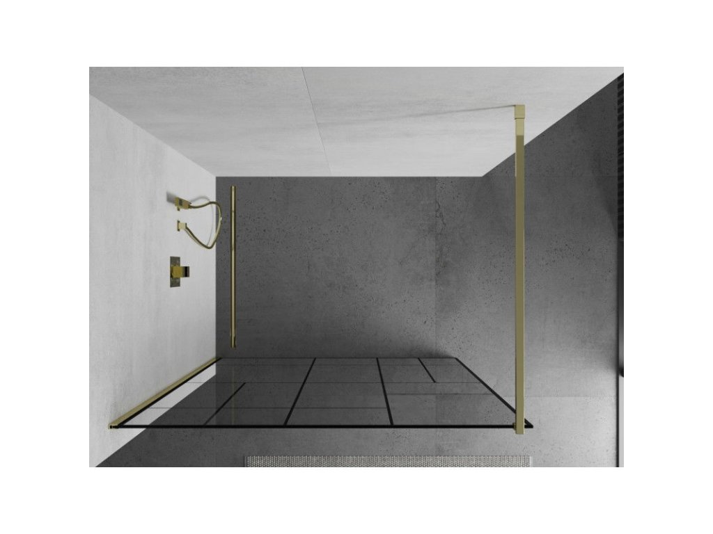 Mexen Kioto sprchová zástena 100 x 200 cm, priehľadné sklo / čierny vzor-2, 8 mm, zlatá - 800-100-101-50-78