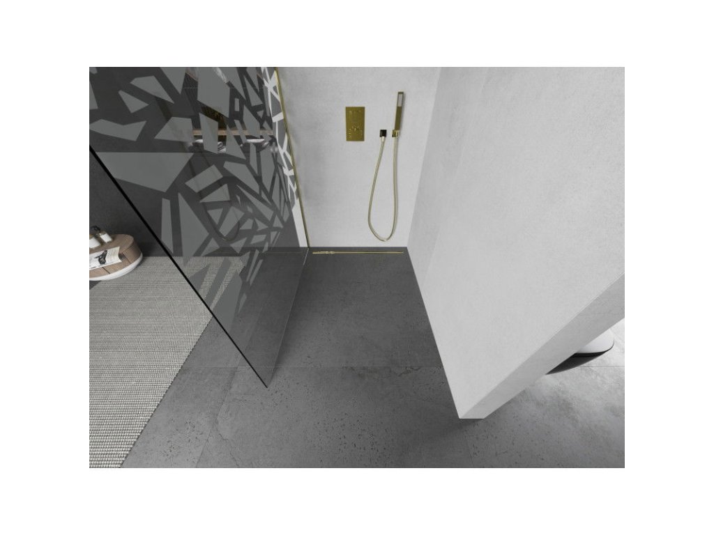 Mexen Kioto sprchová zástena 110 x 200 cm, priehľadné sklo / biely vzor, 8 mm, zlatá - 800-110-101-50-85