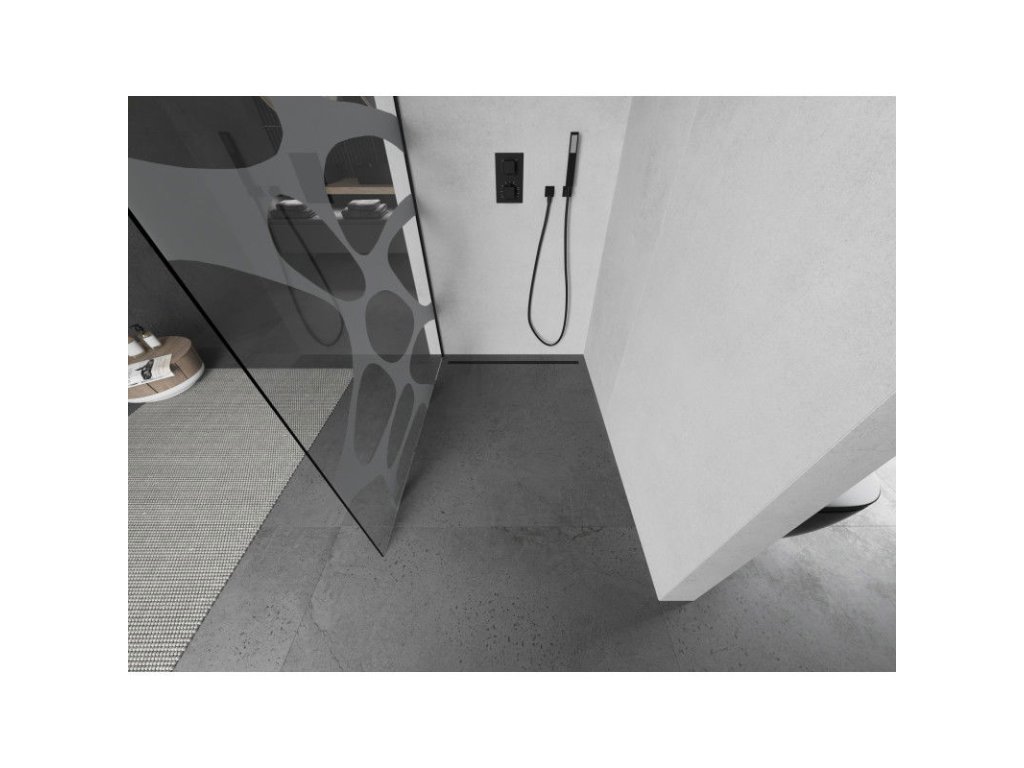 Mexen Kioto sprchová zástena 120 x 200 cm, priehľadné sklo / biely vzor, 8 mm, čierna - 800-120-101-70-97