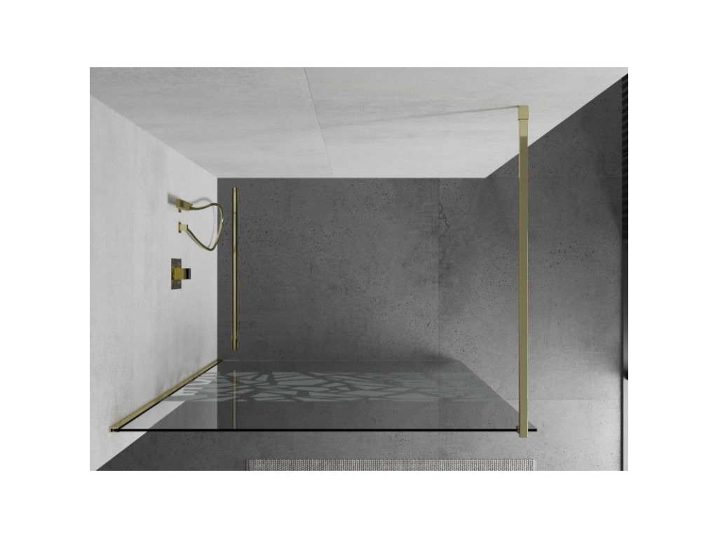 Mexen Kioto sprchová zástena 130 x 200 cm, priehľadné sklo / biely vzor, 8 mm, zlatá - 800-130-101-50-85