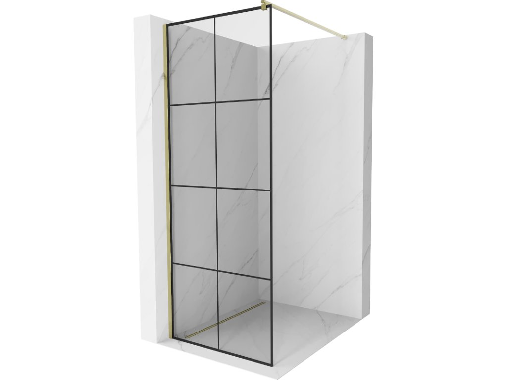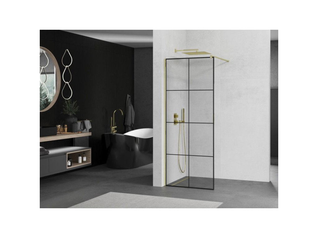 Mexen Kioto sprchová zástena 70 x 200 cm, priehľadné sklo / čierny vzor, 8 mm, zlatá - 800-070-101-50-77