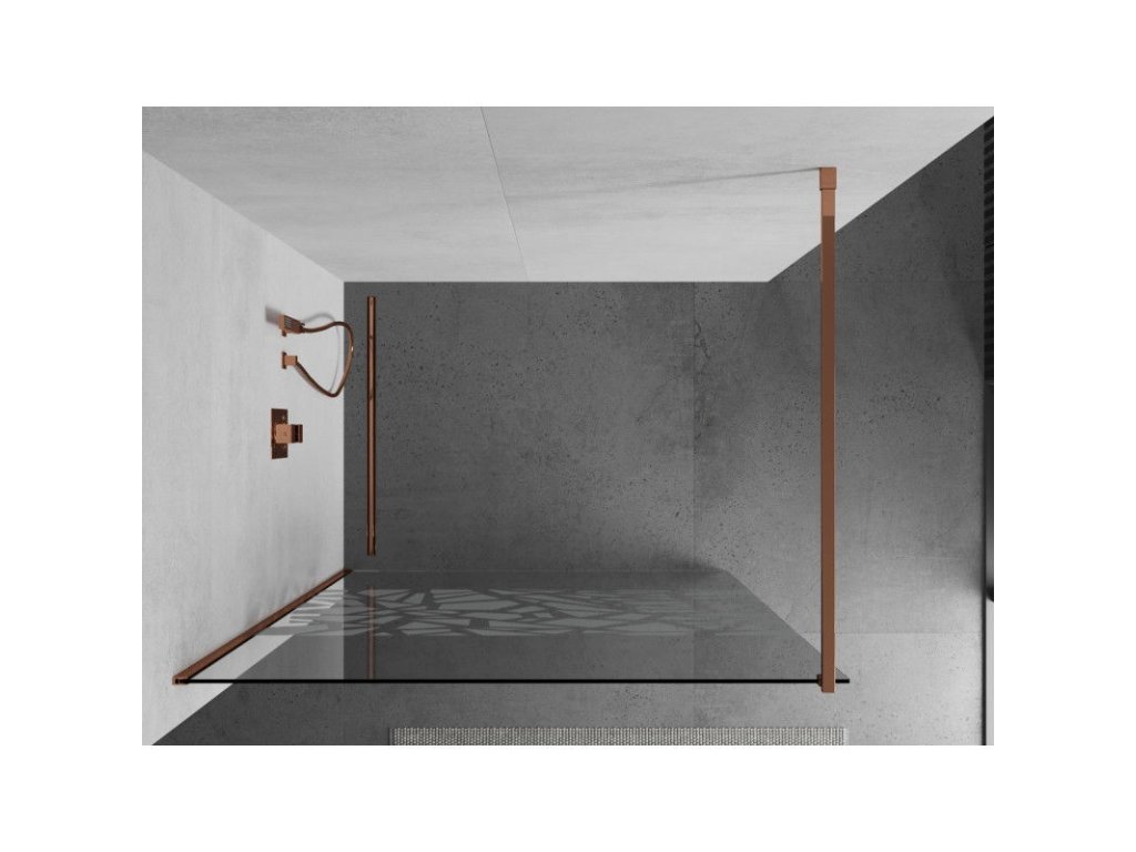 Mexen Kioto sprchová zástena 80 x 200 cm, priehľadné sklo / biely vzor, 8 mm, ružové zlato - 800-080-101-60-85