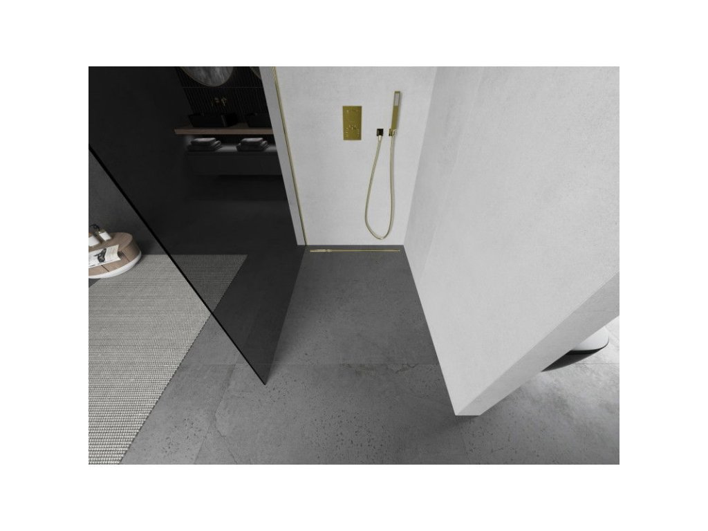 Mexen Kioto sprchová zástena 80 x 200 cm, šedé sklo, 8 mm, zlatá - 800-080-101-50-40