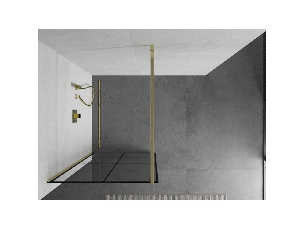 Mexen Kioto sprchová zástena 90 x 200 cm, priehľadné sklo / čierny vzor, 8 mm, zlatá - 800-090-101-50-77