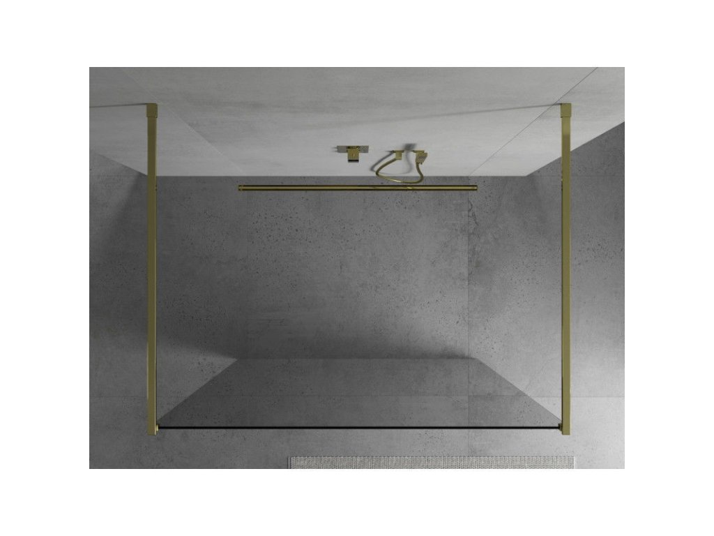 Mexen Kioto sprchová zástena voľne stojaca 100 x 200 cm, priehľadné sklo, 8 mm, zlatá - 800-100-002-50-00