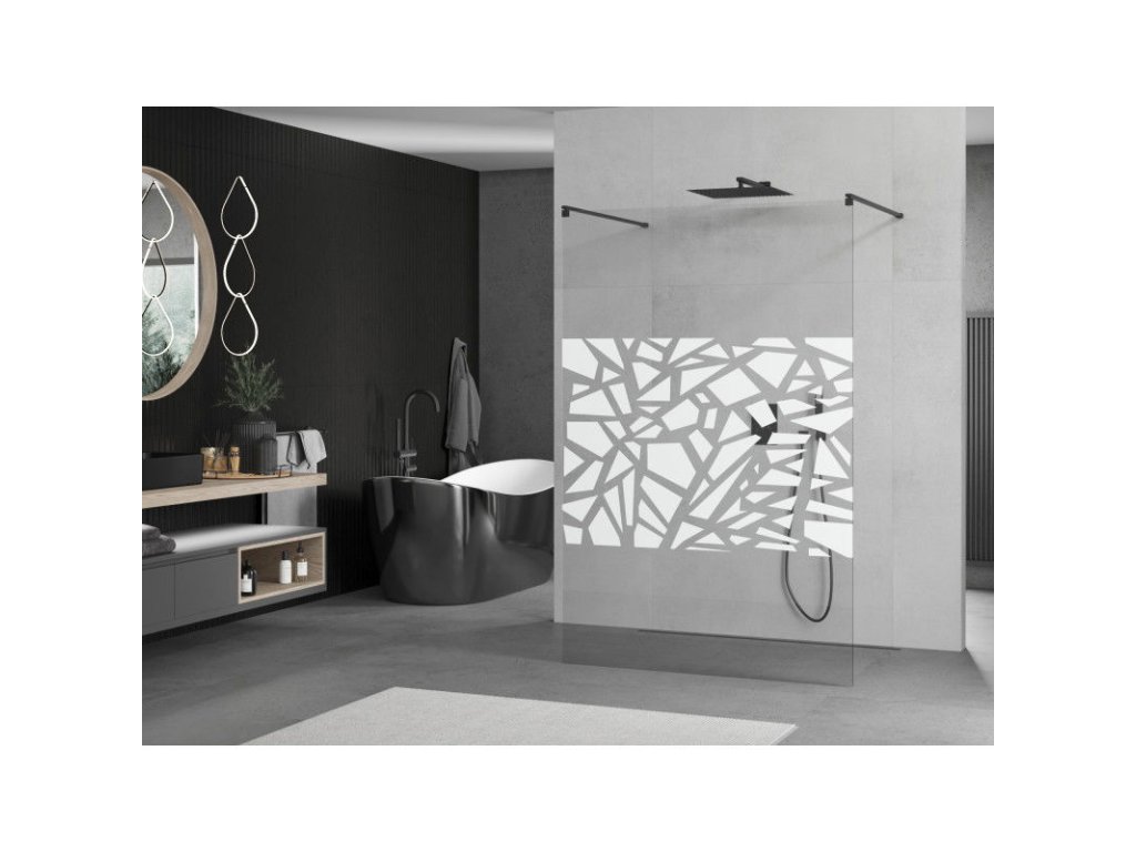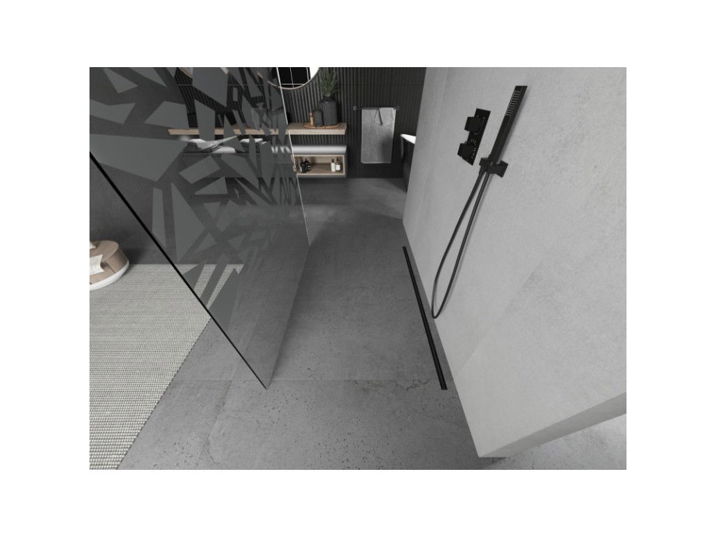 Mexen Kioto sprchová zástena voľne stojaca 100 x 200 cm, priehľadné sklo / biely vzor, 8 mm, čierna - 800-100-002-70-85