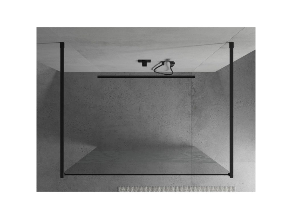 Mexen Kioto sprchová zástena voľne stojaca 110 x 200 cm, priehľadné sklo / biely vzor, 8 mm, čierna - 800-110-002-70-85