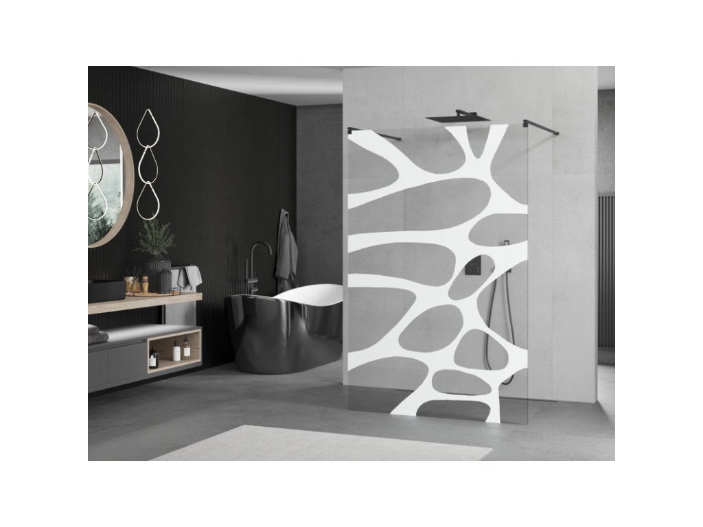 Mexen Kioto sprchová zástena voľne stojaca 120 x 200 cm, priehľadné sklo / biely vzor, 8 mm, čierna - 800-120-002-70-97