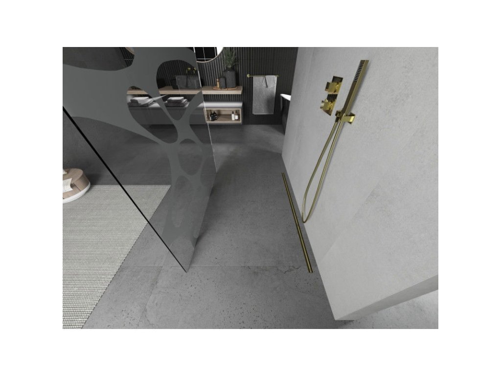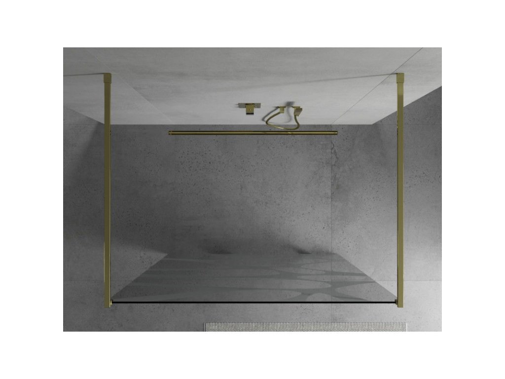 Mexen Kioto sprchová zástena voľne stojaca 120 x 200 cm, priehľadné sklo / biely vzor, 8 mm, zlatá - 800-120-002-50-97