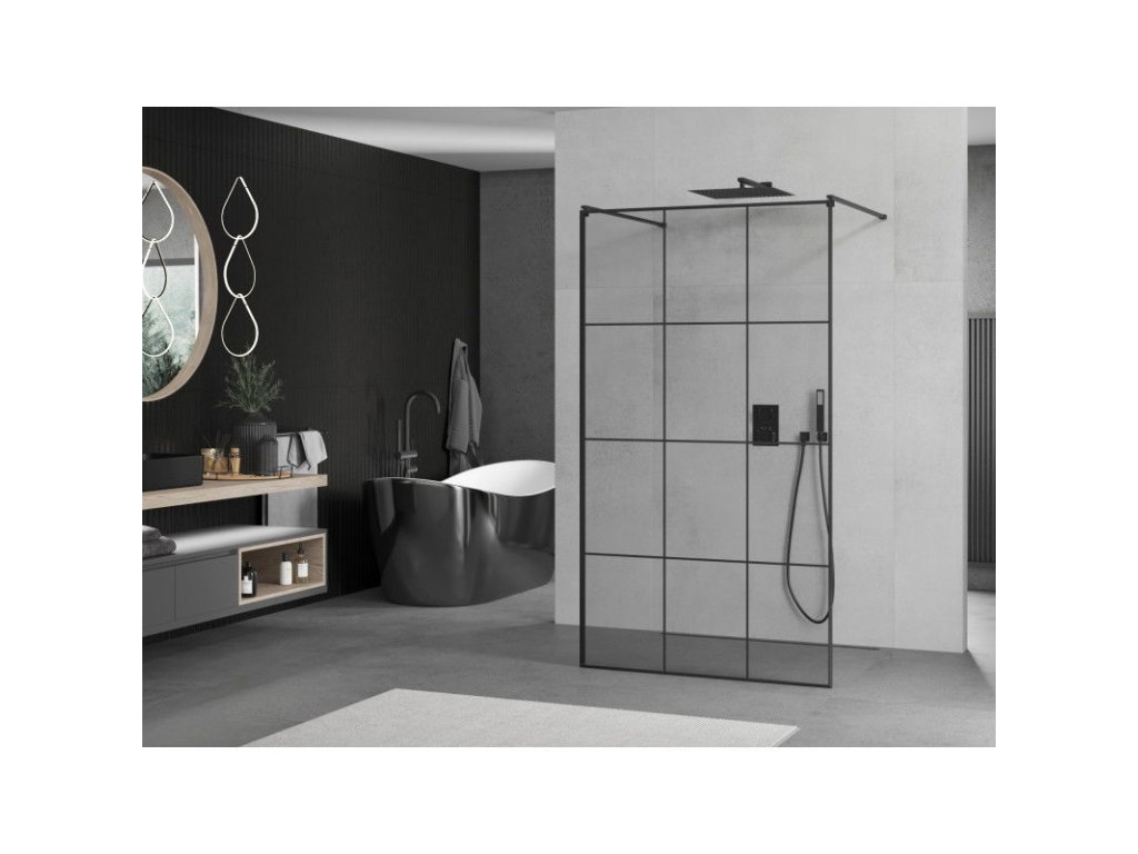 Mexen Kioto sprchová zástena voľne stojaca 120 x 200 cm, priehľadné sklo / čierny vzor, 8 mm, čierna - 800-120-002-70-77
