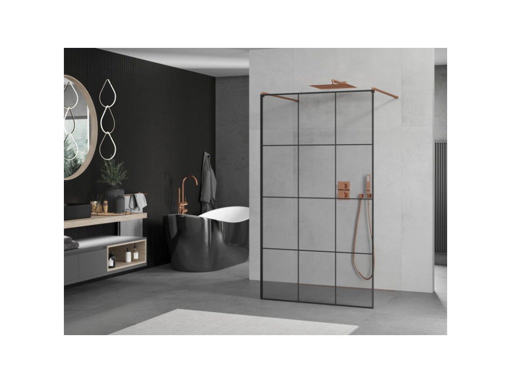 Mexen Kioto sprchová zástena voľne stojaca 120 x 200 cm, priehľadné sklo / čierny vzor, 8 mm, ružové zlato - 800-120-002-60-77
