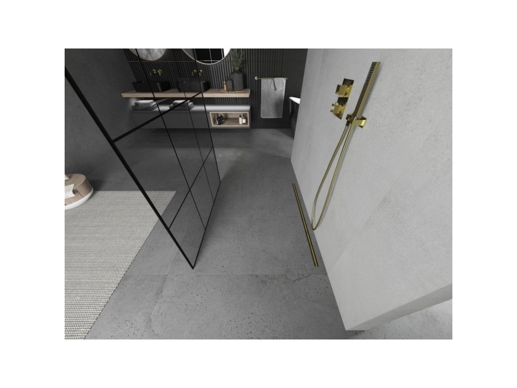 Mexen Kioto sprchová zástena voľne stojaca 120 x 200 cm, priehľadné sklo / čierny vzor, 8 mm, zlatá - 800-120-002-50-77