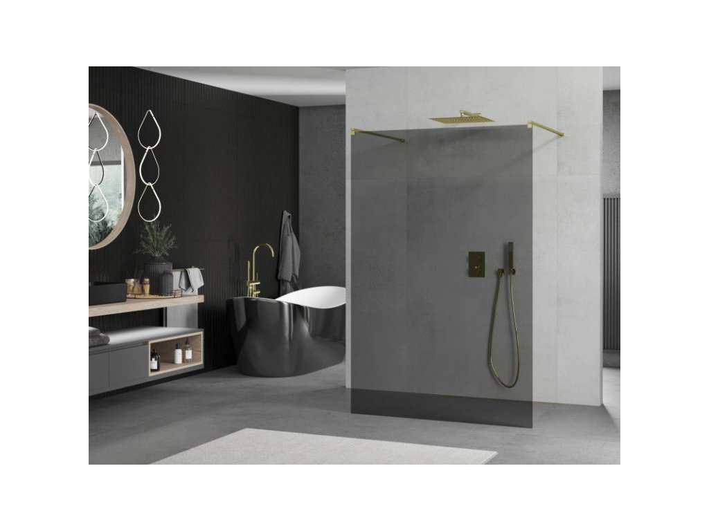 Mexen Kioto sprchová zástena voľne stojaca 120 x 200 cm, šedé sklo, zlatá - 800-120-002-50-40