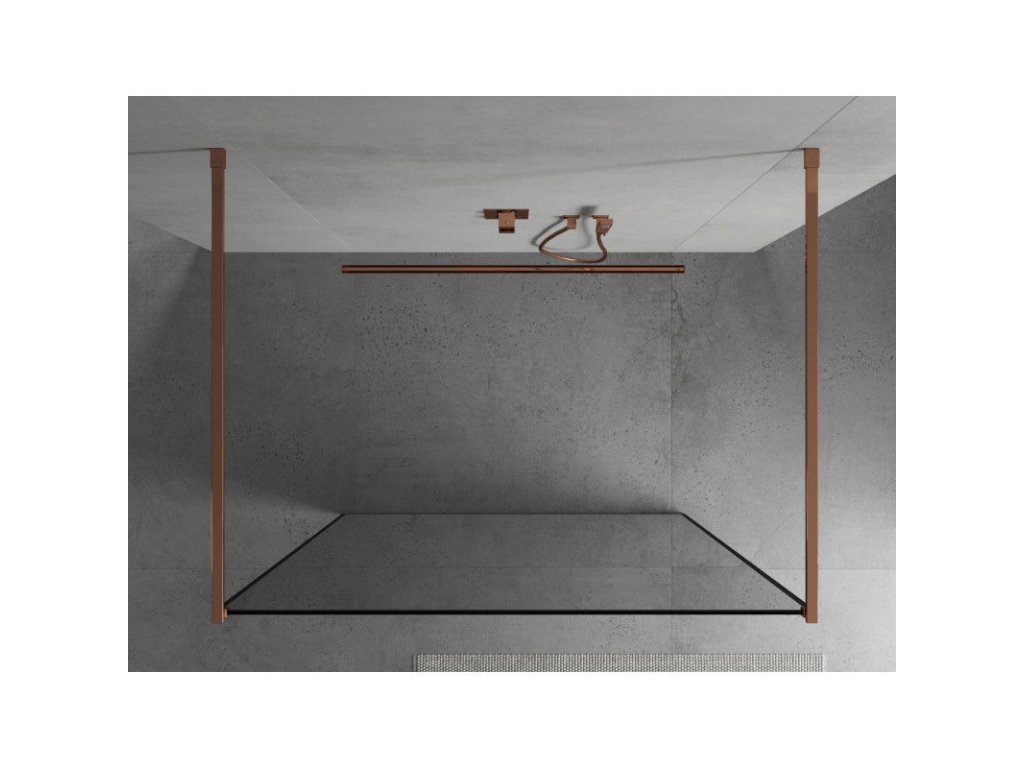 Mexen Kioto sprchová zástena voľne stojaca 130 x 200 cm, priehľadné sklo / čierny rám, 8 mm, ružové zlato - 800-130-002-60-70