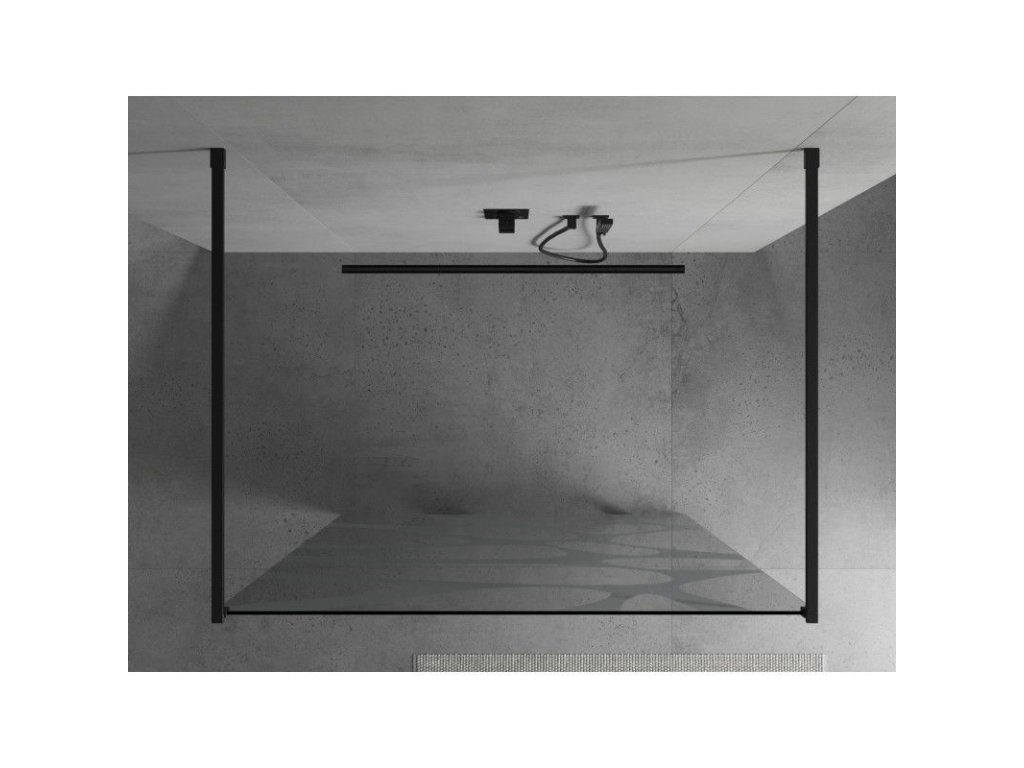 Mexen Kioto sprchová zástena voľne stojaca 140 x 200 cm, priehľadné sklo / biely vzor, 8 mm, čierna - 800-140-002-70-97