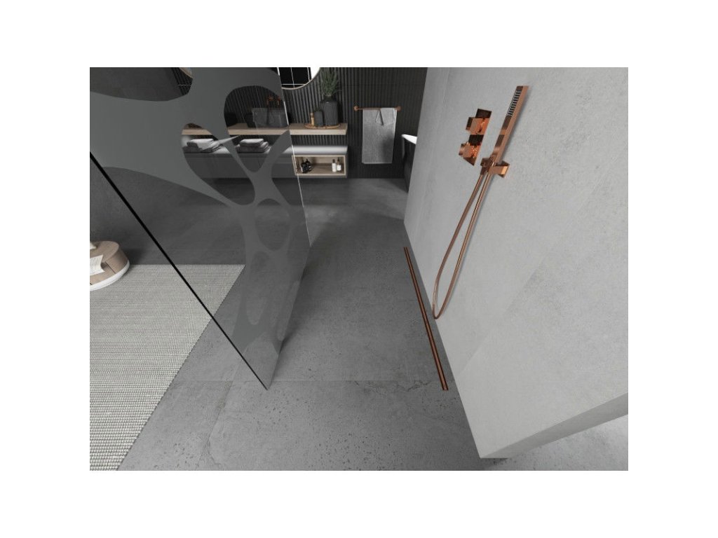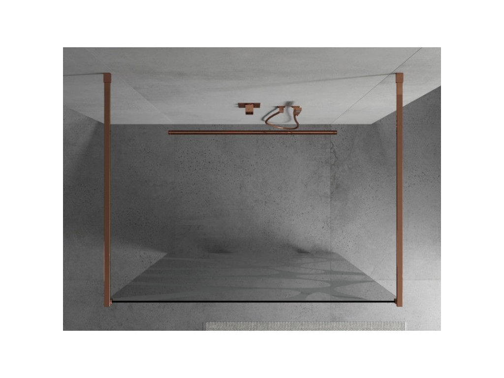 Mexen Kioto sprchová zástena voľne stojaca 140 x 200 cm, priehľadné sklo / biely vzor, 8 mm, ružové zlato - 800-140-002-60-97