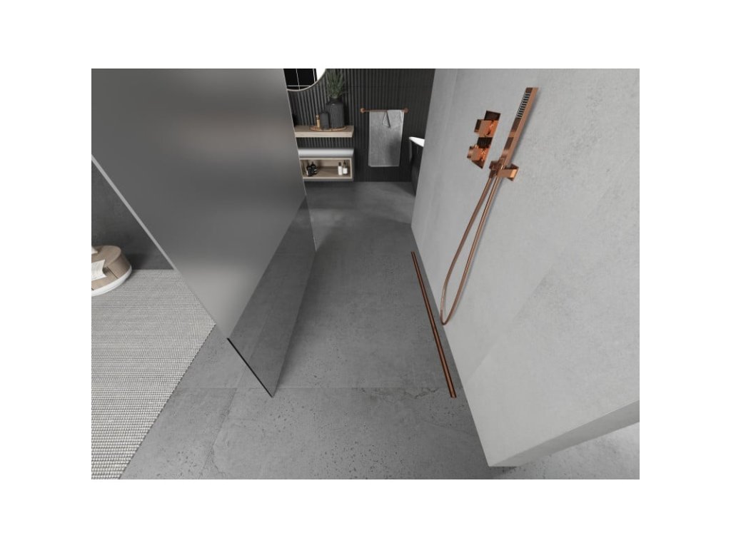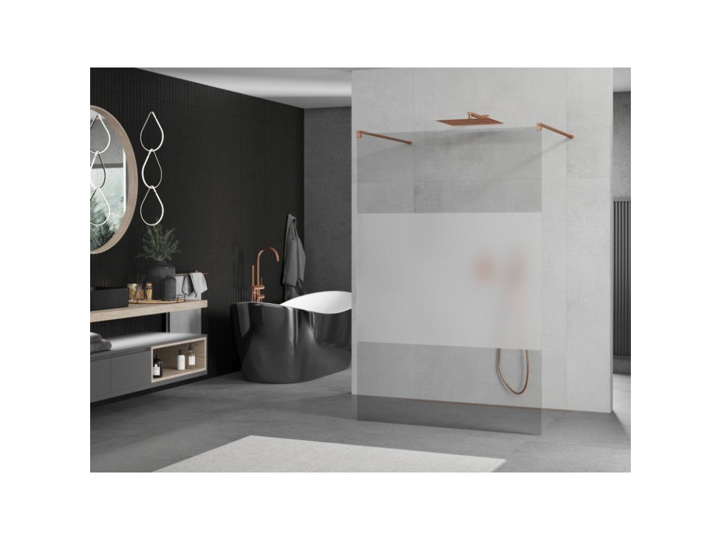 Mexen Kioto sprchová zástena voľne stojaca 140 x 200 cm, sklo priehľadné / námraza, 8 mm, ružové zlato - 800-140-002-60-35
