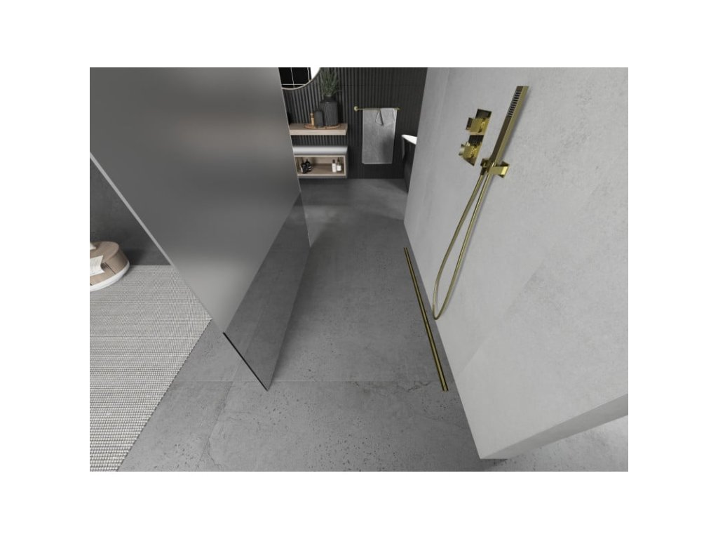 Mexen Kioto sprchová zástena voľne stojaca 140 x 200 cm, sklo priehľadné / námraza, 8 mm, zlatá - 800-140-002-50-35