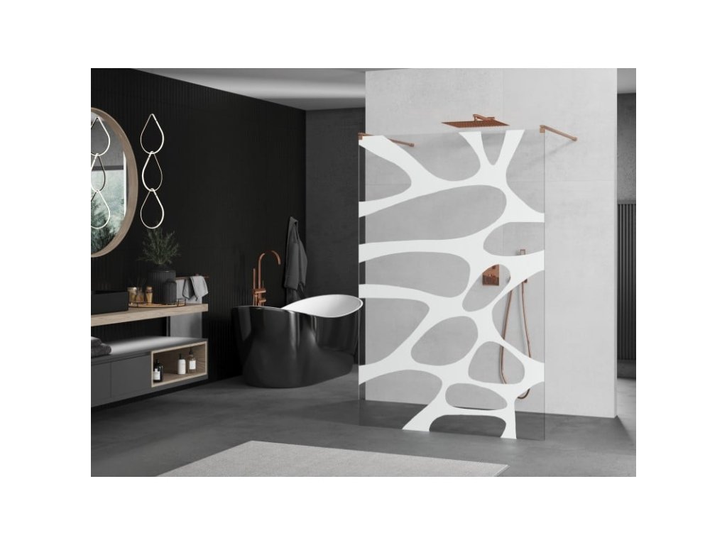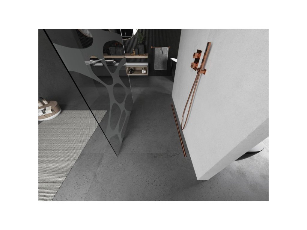 Mexen Kioto voľne stojaca sprchová stena 100 x 200 cm, biela 8 mm vzor, brúsená meď - 800-100-002-65-97