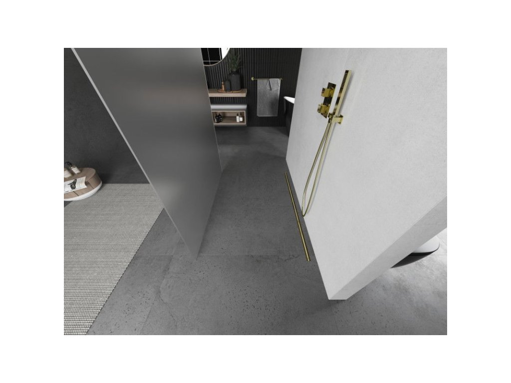 Mexen Kioto voľne stojaca sprchová stena 100 x 200 cm, matná 8 mm, brúsené zlato - 800-100-002-55-30