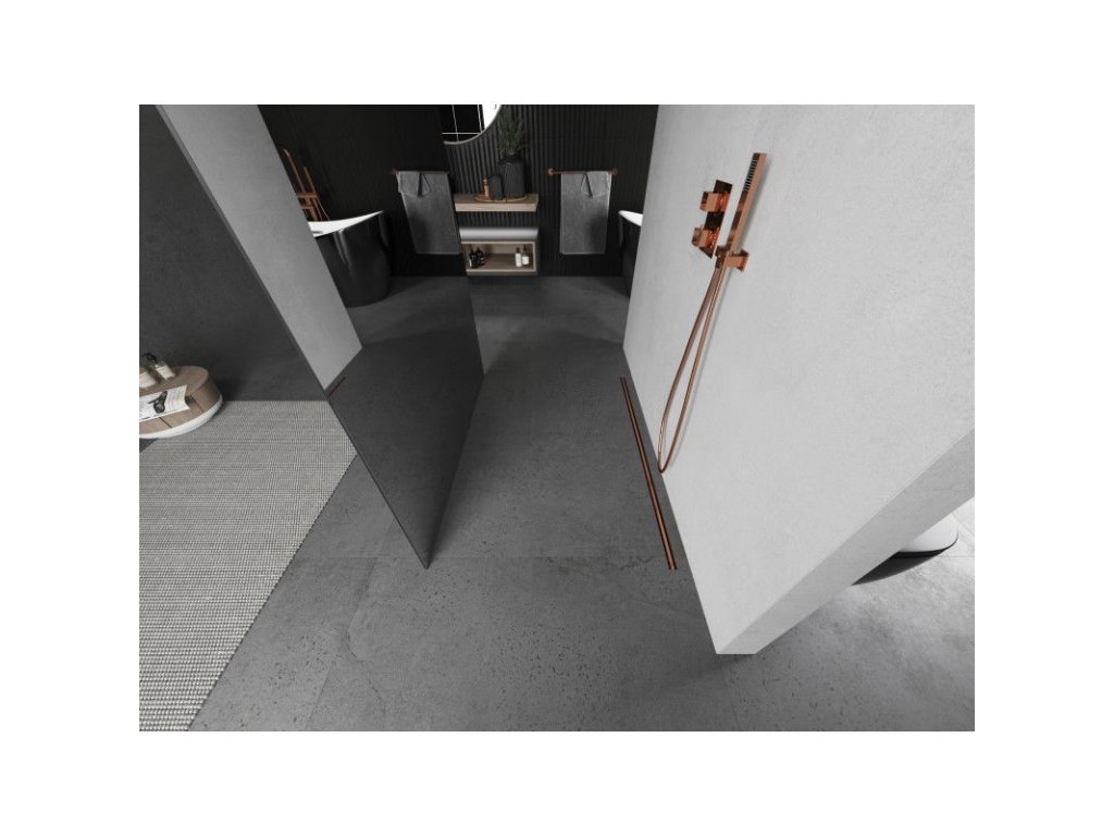 Mexen Kioto voľne stojaca sprchová stena 100 x 200 cm, zrkadlo 8 mm, brúsená meď - 800-100-002-65-50