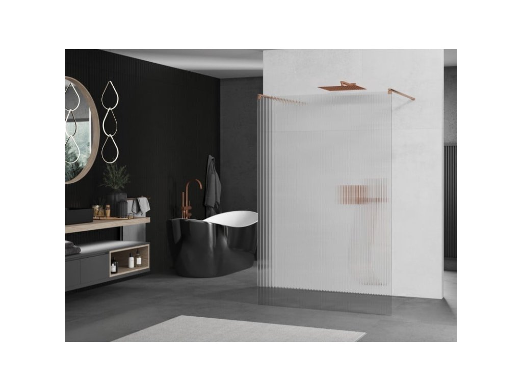 Mexen Kioto voľne stojaca sprchová stena 110 x 200 cm, 8 mm pásy, brúsená meď - 800-110-002-65-09