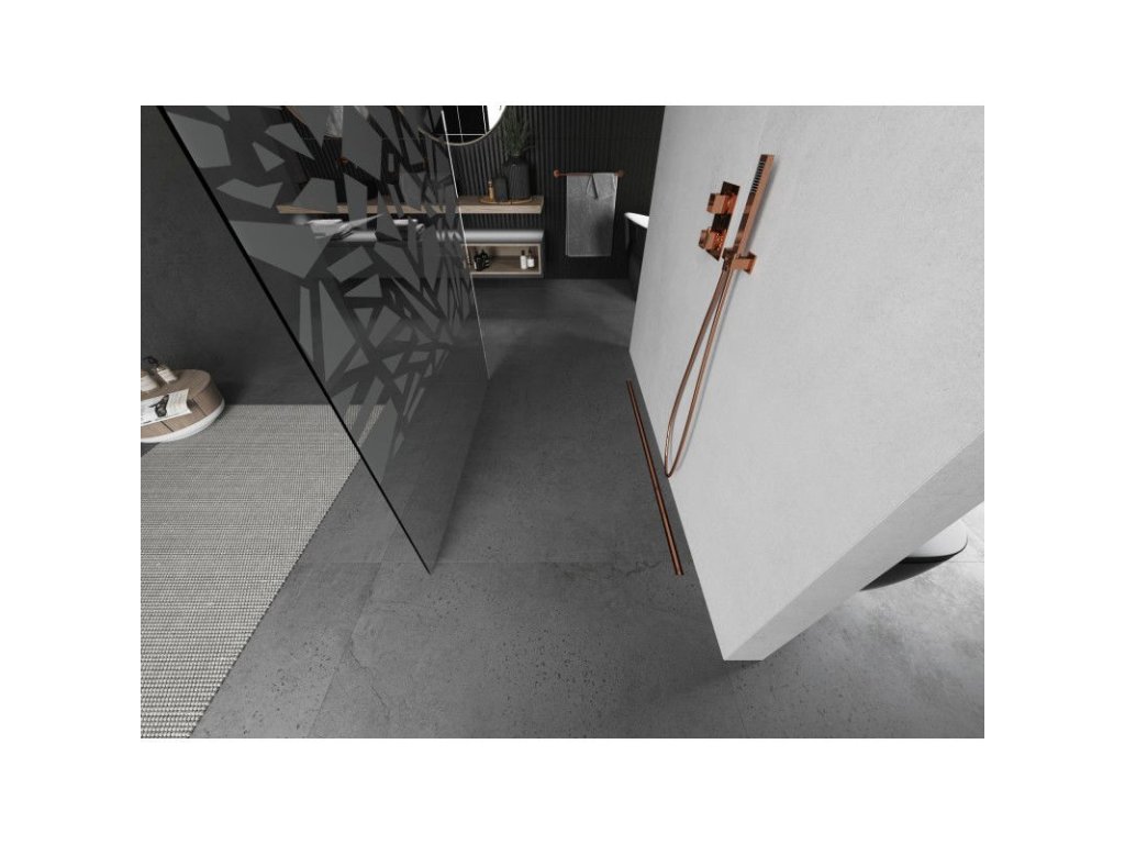 Mexen Kioto voľne stojaca sprchová stena 110 x 200 cm, biela 8 mm vzor, brúsená meď - 800-110-002-65-85