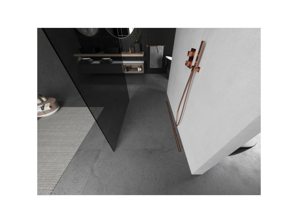 Mexen Kioto voľne stojaca sprchová stena 110 x 200 cm, grafit 8 mm, brúsená meď - 800-110-002-65-40