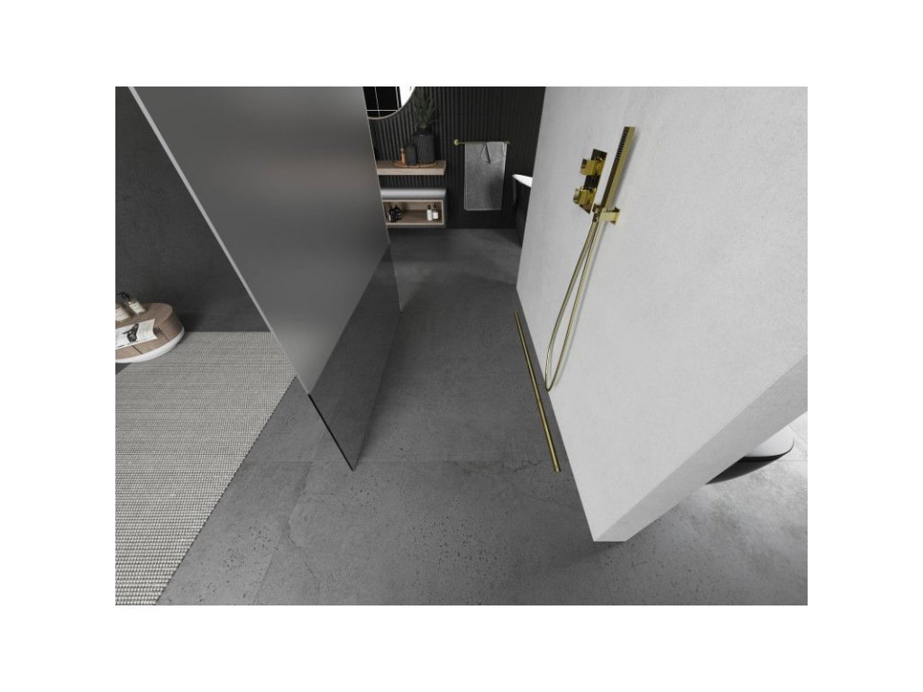 Mexen Kioto voľne stojaca sprchová stena 110 x 200 cm, transparentná/mrazivá 8 mm, brúsené zlato - 800-110-002-55-35