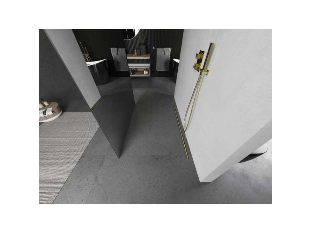 Mexen Kioto voľne stojaca sprchová stena 110 x 200 cm, zrkadlo 8 mm, brúsené zlato - 800-110-002-55-50