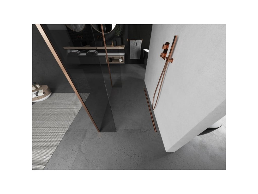 Mexen Kioto voľne stojaca sprchová stena 115 x 30 x 30 cm, transparentná, brúsená meď - 800-115-030-222-65-00-030