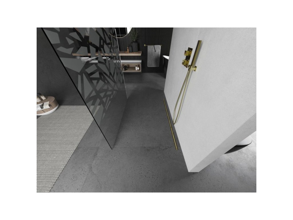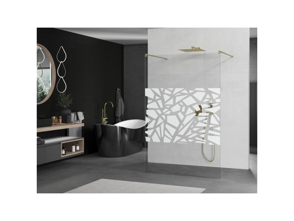 Mexen Kioto voľne stojaca sprchová stena 120 x 200 cm, biela 8 mm vzor, brúsené zlato - 800-120-002-55-85