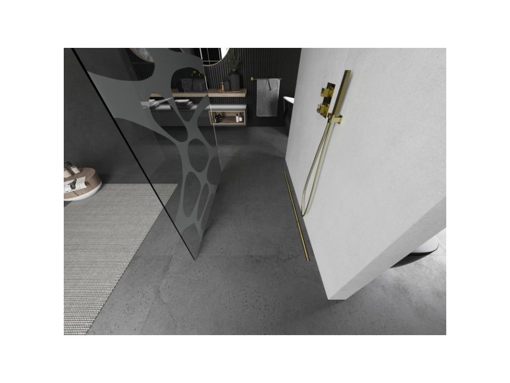 Mexen Kioto voľne stojaca sprchová stena 140 x 200 cm, biela 8 mm vzor, brúsené zlato - 800-140-002-55-97