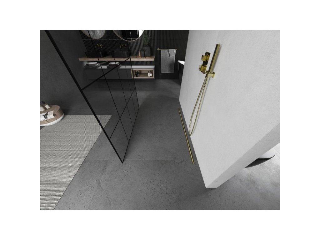 Mexen Kioto voľne stojaca sprchová stena 150 x 200 cm, 8 mm čierny vzor, brúsené zlato - 800-150-002-55-77